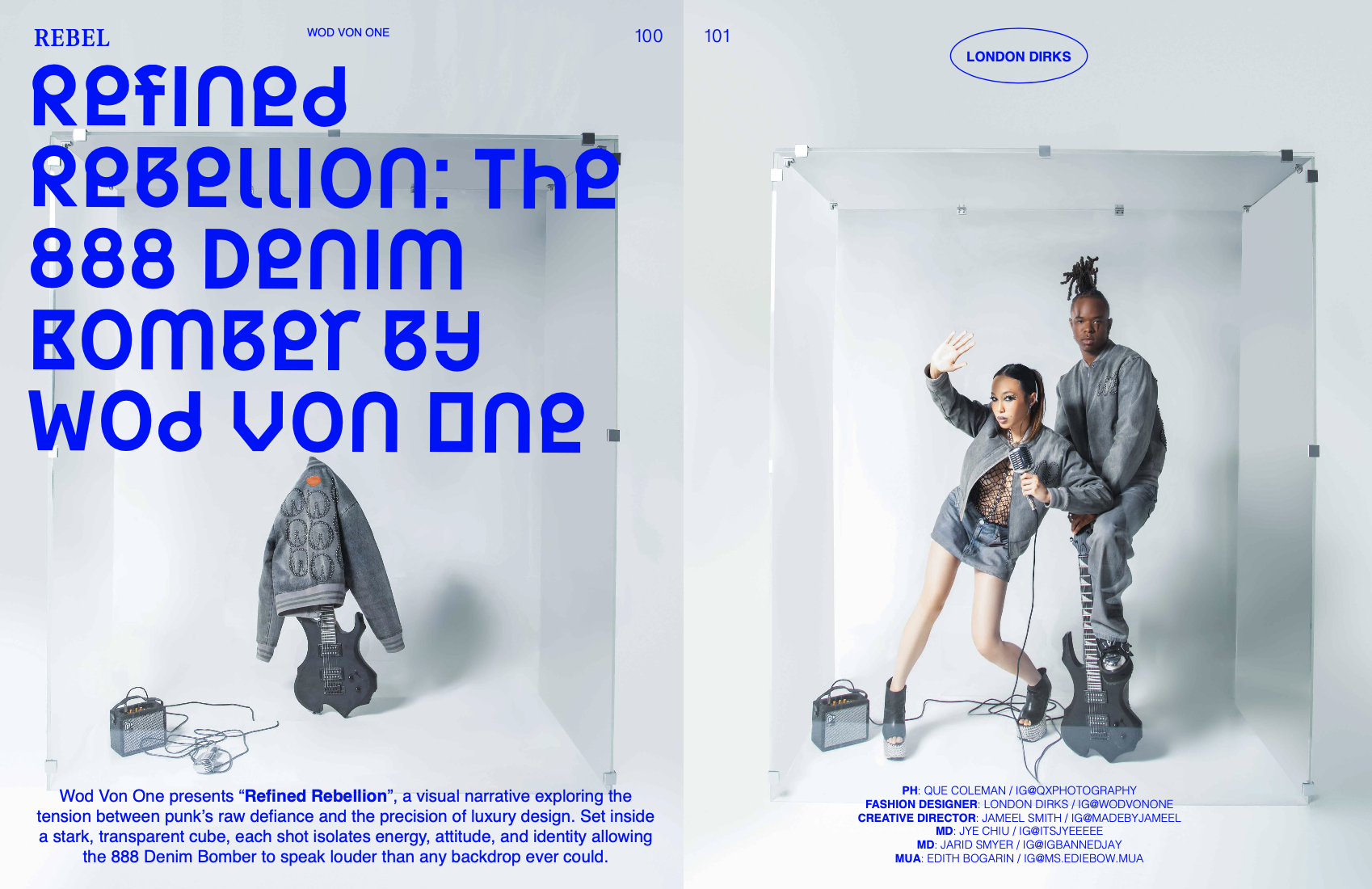 The 888 Denim Bomber is crafted from 100% wax-coated denim with a structured silhouette and sleek finish. Metal bead logos and a smooth polyester lining complete this modern statement in elevated luxury.